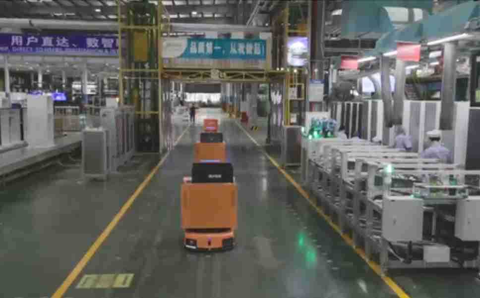 为车载冰箱物流配送打造的智能解决方案,,,包含产中物流通过潜伏举升AMR搬运至线边,,,,产后成品物流智能仓储,,,,流程包含产中物流智能齐套入库,,,,线边安灯叫料AMR智能配送至线边,,成品入库、、、、出库,,,,通过无人堆高车机器人,,,智能仓储管理替代人工作业管理,,实现更高存储、、、更高效率、、、、更具柔性化的解决方案。。。。